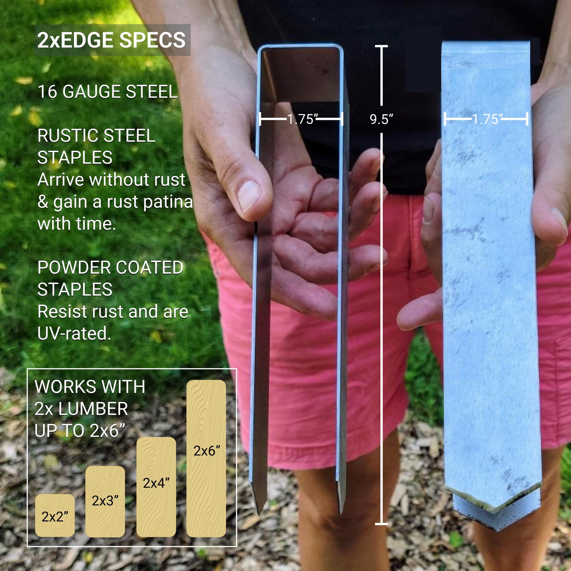 To make a four-sided bed that is up to 10-feet by 20-feet, use six boards and ten 2xEDGE Staples.