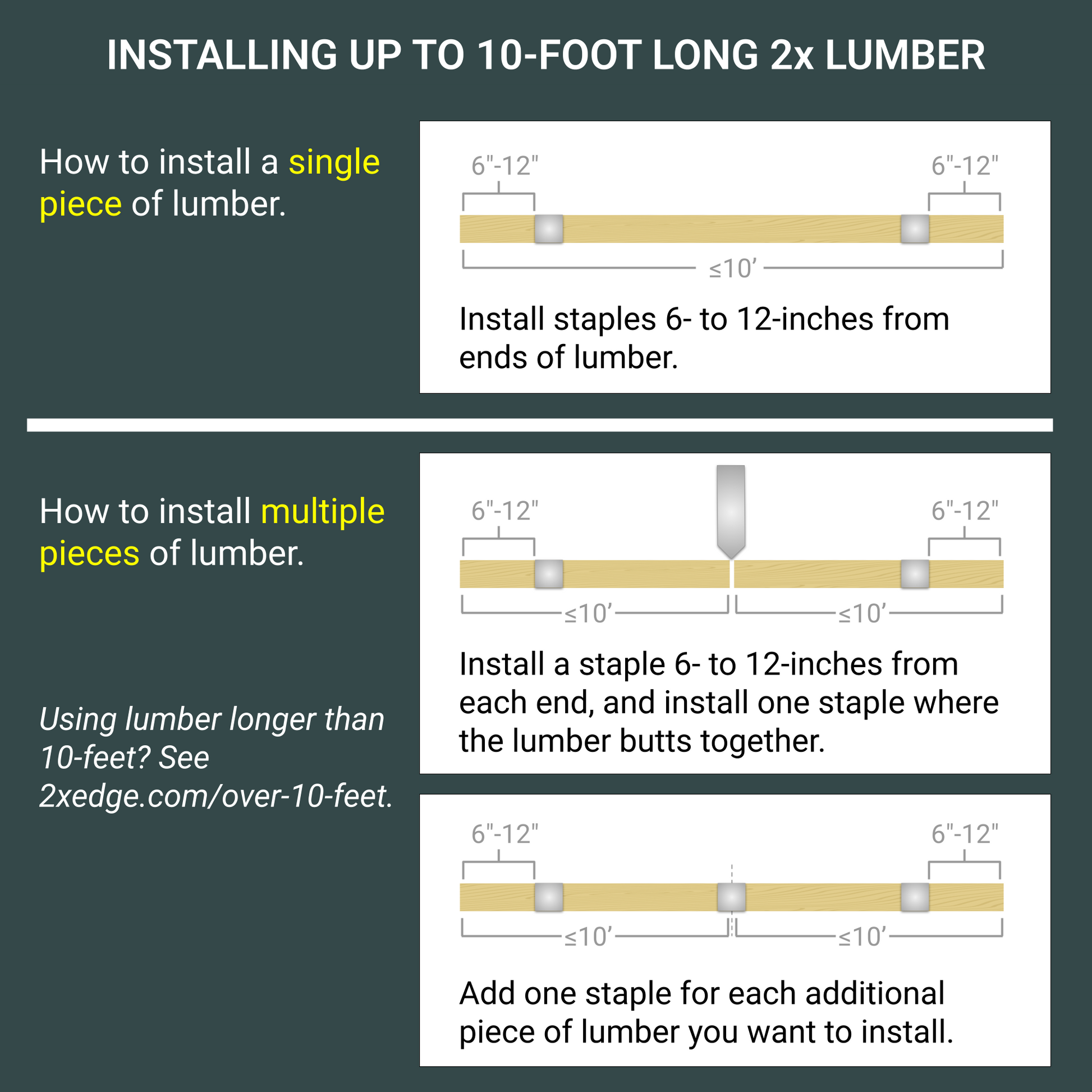 This 15-second long video explains how to use 2xEDGE Staples with lumber that's over 10-feet long.