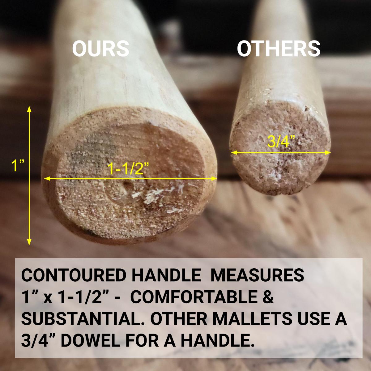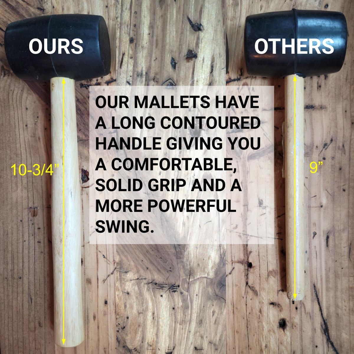 A nicely balanced 16 ounce rubber mallet with a substantial, contoured wooden handle supplies a strong, comfortable grip and powerful swing. Durable, powerful, long lasting performance.